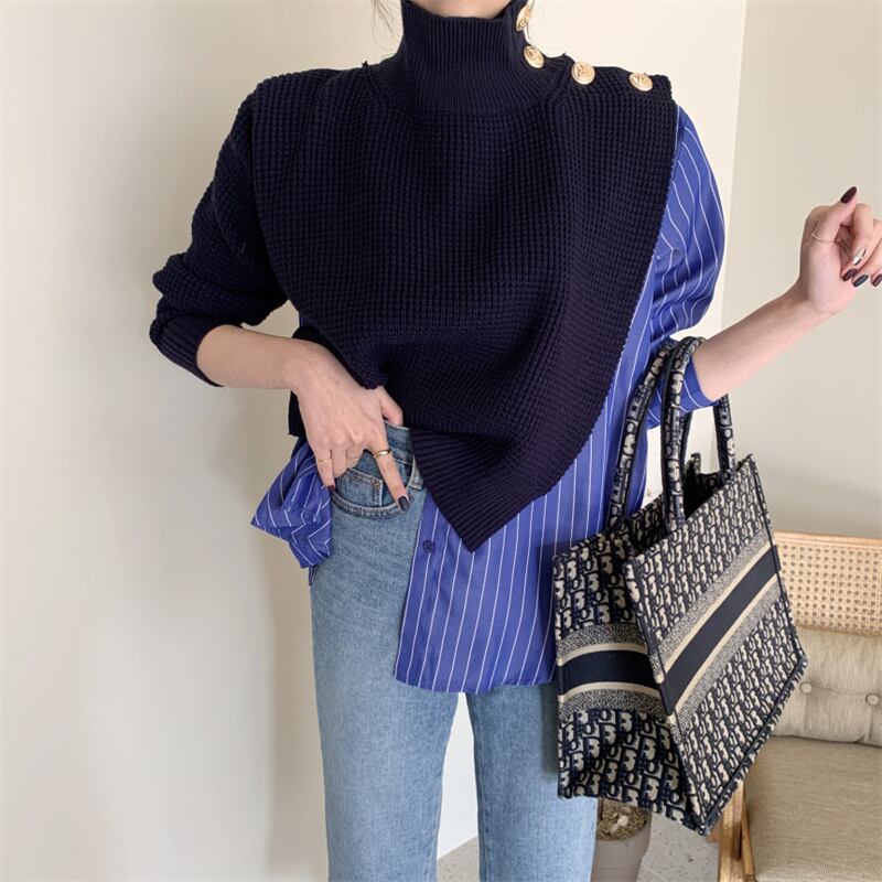 2022冬INS★ファッション レトロ おしゃれ エレガント 偽2枚 ニットセーター