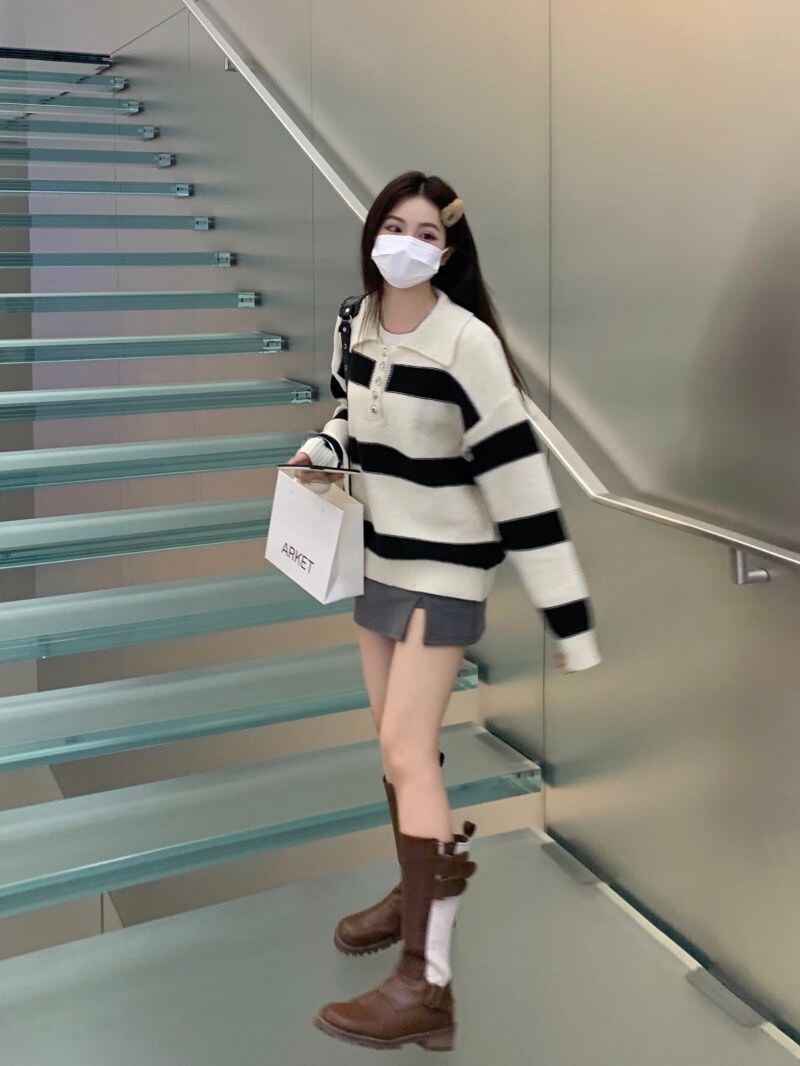 2022冬INS★ファッション性抜群 キャンパス スプライス 折り襟 ニットセーター