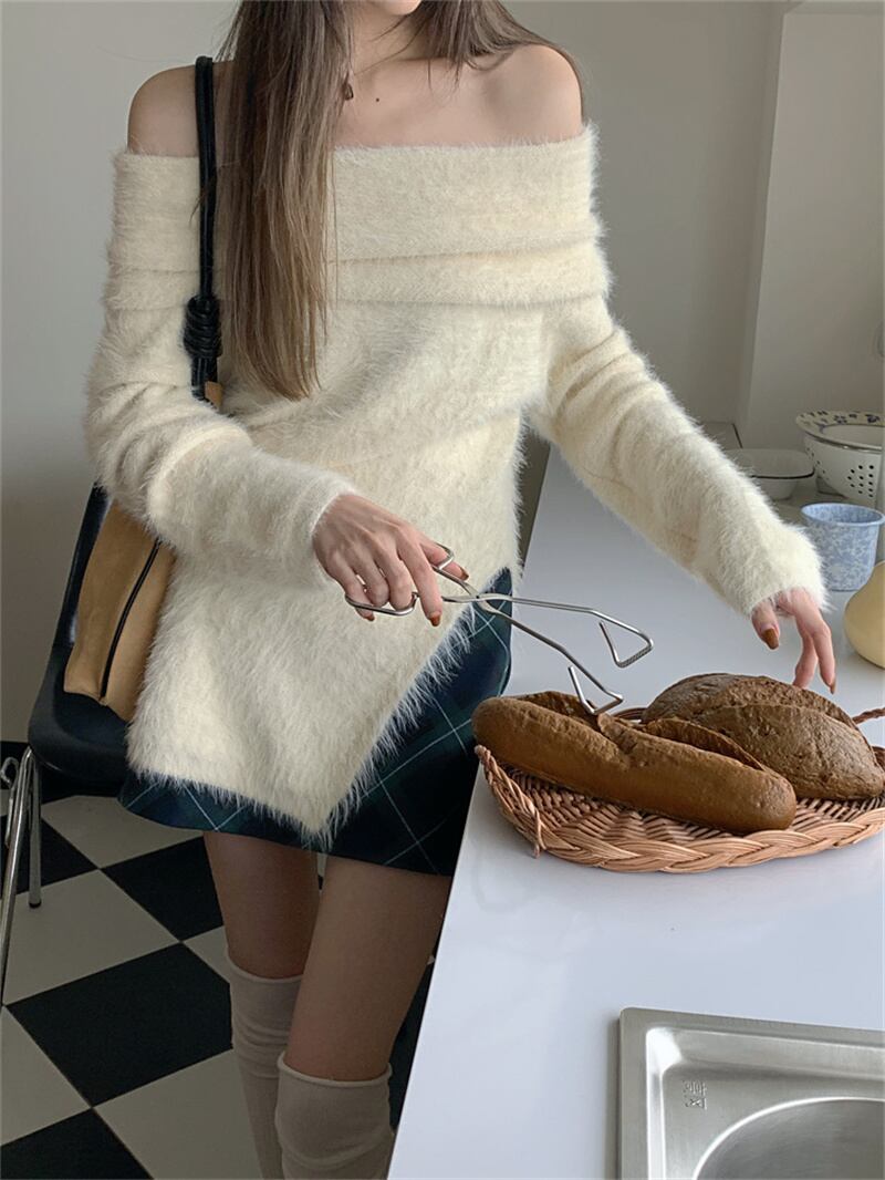 2022冬INS★ファッション性抜群 エレガント ボートネック ニット セーター