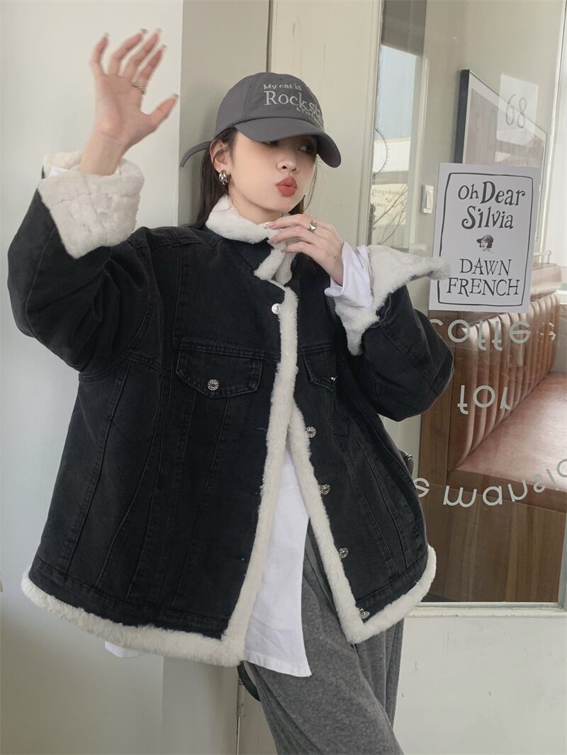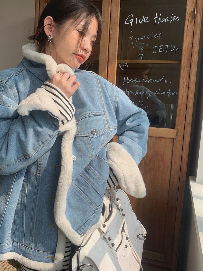 2022冬INS★ファッション おしゃれ スプライス デニム 防寒 コート