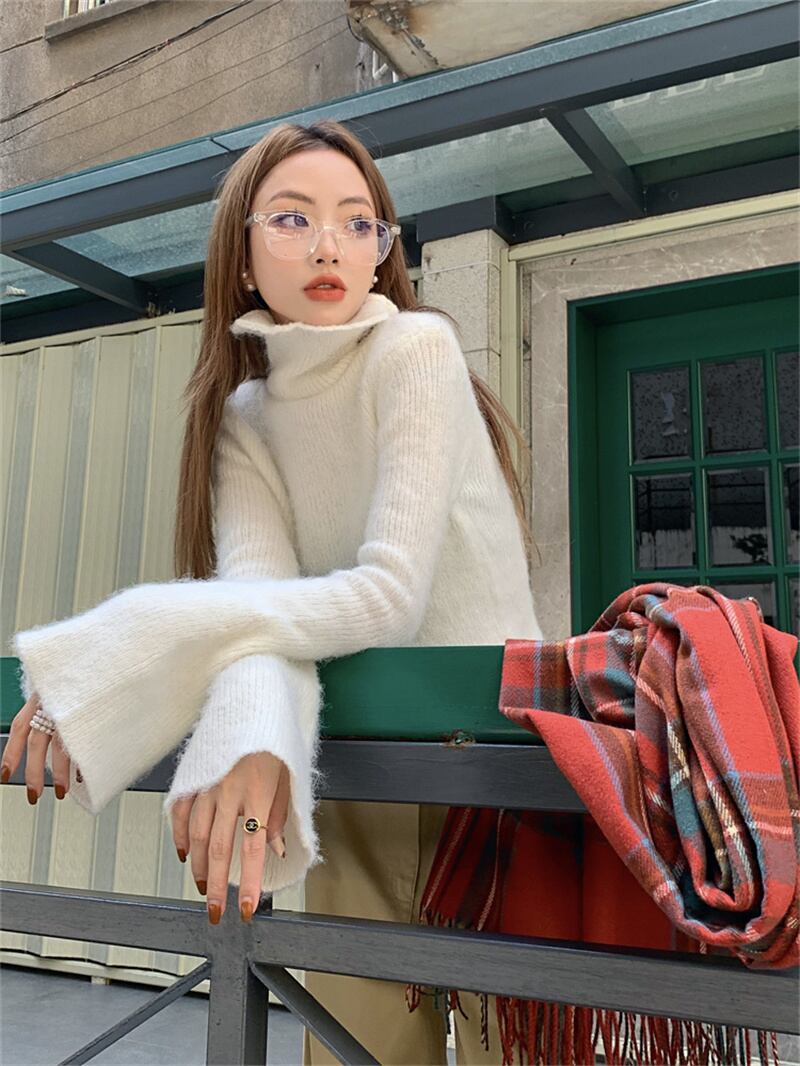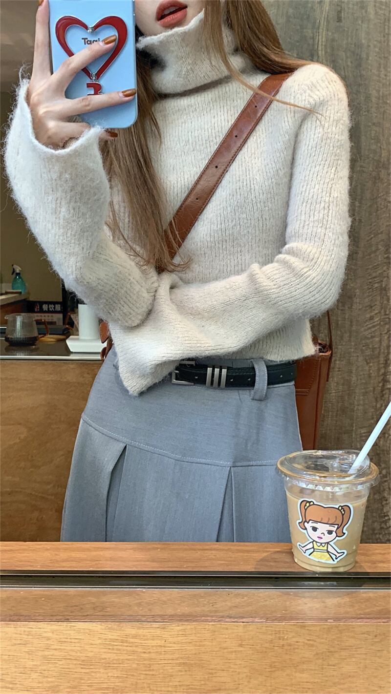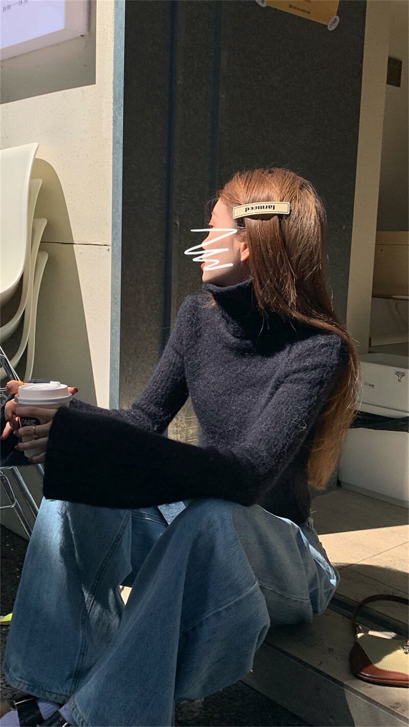 2022冬INS★気質合わせやすい アルファベット 無地 ハイネック 長袖Tシャツ