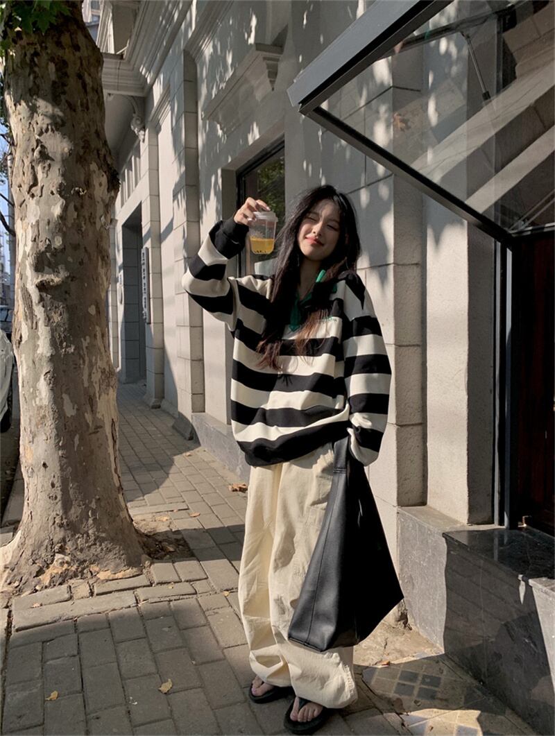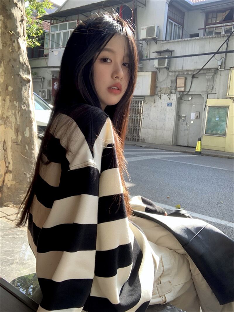 2022冬INS★気質 カジュアル レトロ 長袖 ストライプ 柄  キャンパス  パーカー