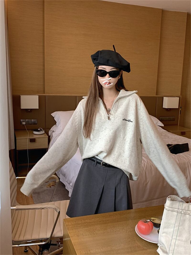 2022冬INS★気質 カジュアル レトロ 長袖 チャック ニットセーター コート
