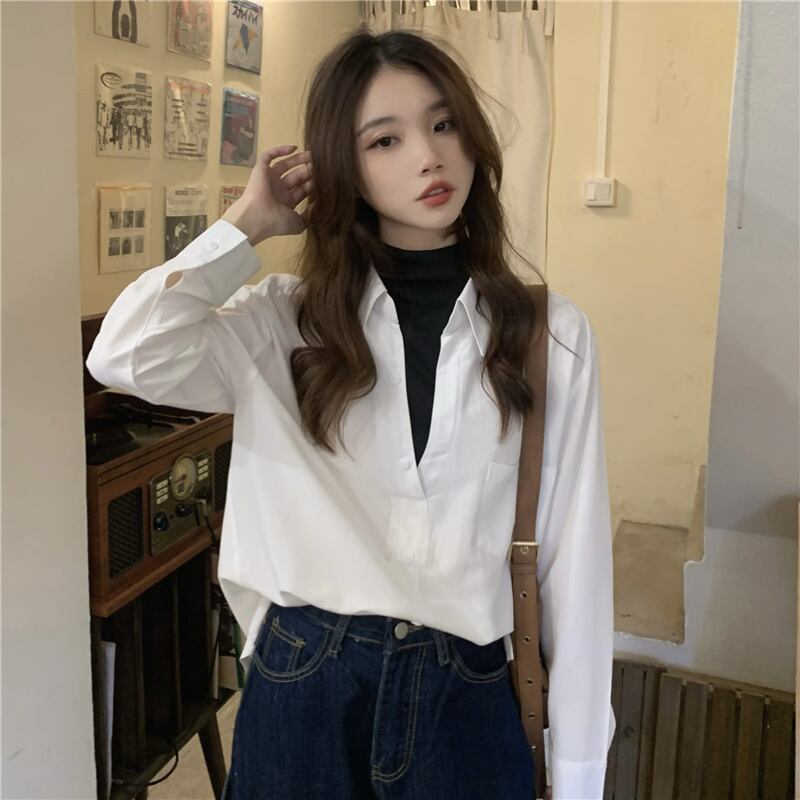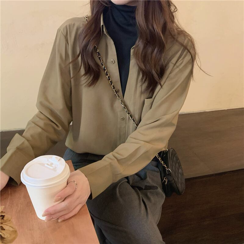 2022冬INS★レイジー風レトロ エレガント スプライス拼接 シングルブレスト シャツ