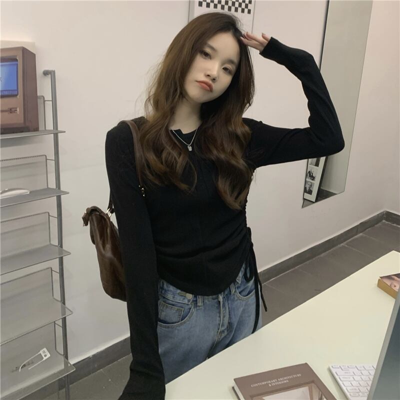 INS 秋新作性抜群 エレガント 不規則 キャンパス 長袖 ニットTシャツ