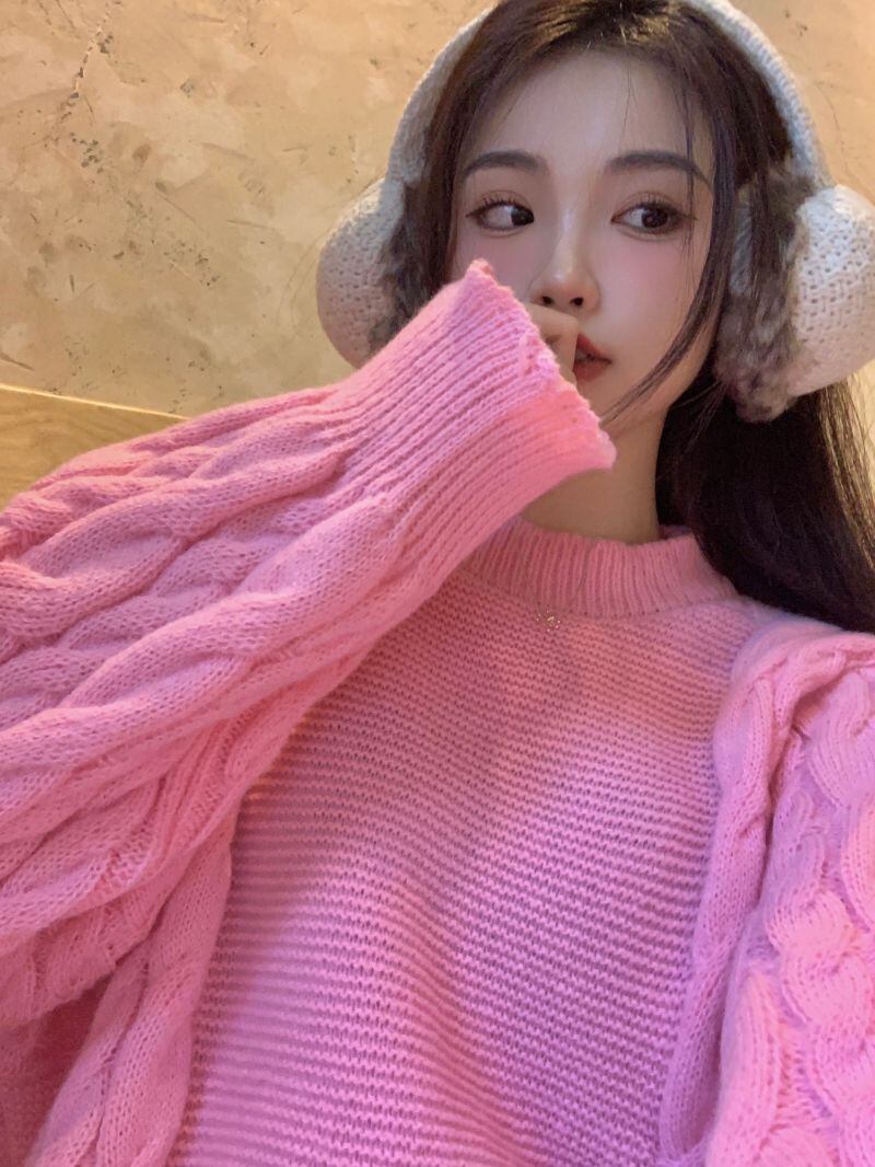 2022冬INS★レイジー風レトロ ラウンドネック ツイスト模様 ニットセーター
