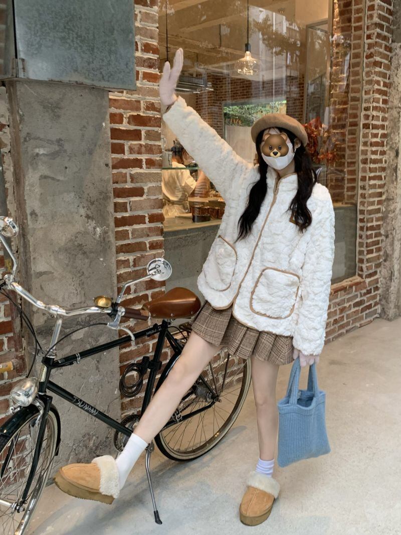 2022冬INS★韓国風 レトロ Vネック デザイン感 エレガント ラムスキン コート