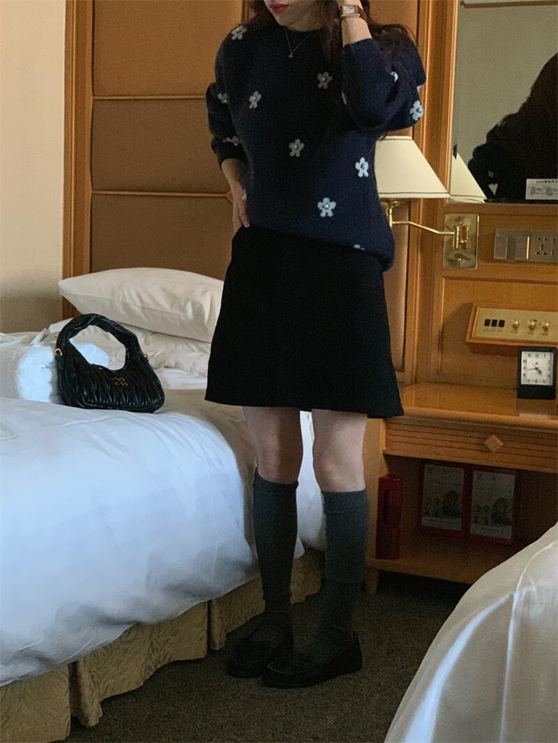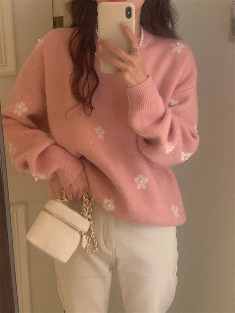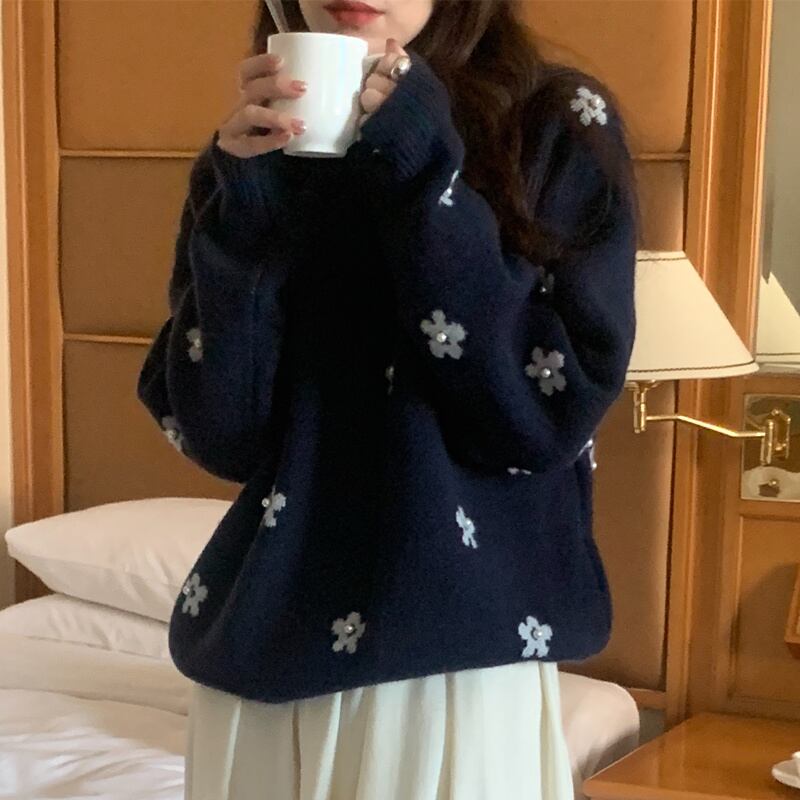 2022冬INS★韓国風 超人気ゆったり 可愛い 花柄 ニットセーター