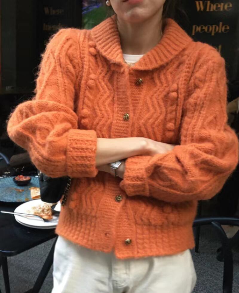 2022冬INS★韓国風性抜群 レトロ シングルブレスト ツイスト模様 ニットコート