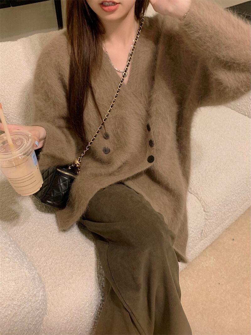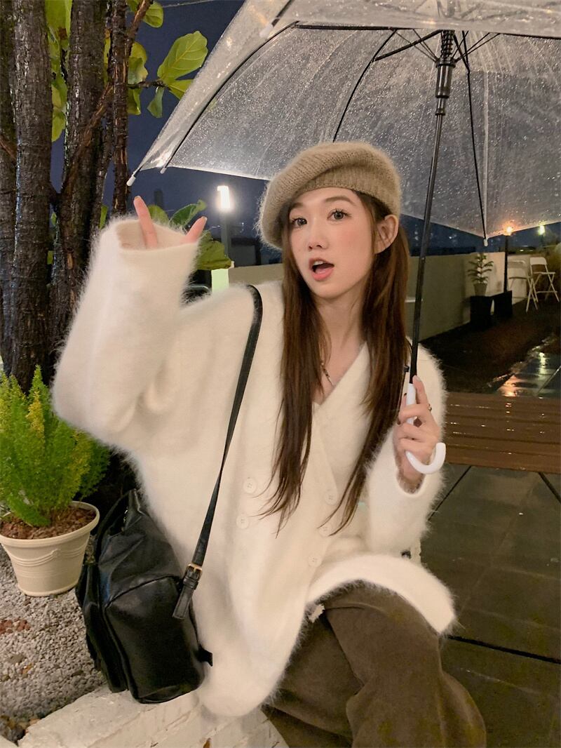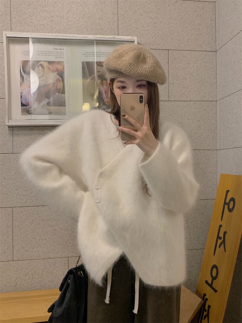 INS 秋新作 エレガント 不規則 ミンク ふわふわ シングルブレスト カーディガン
