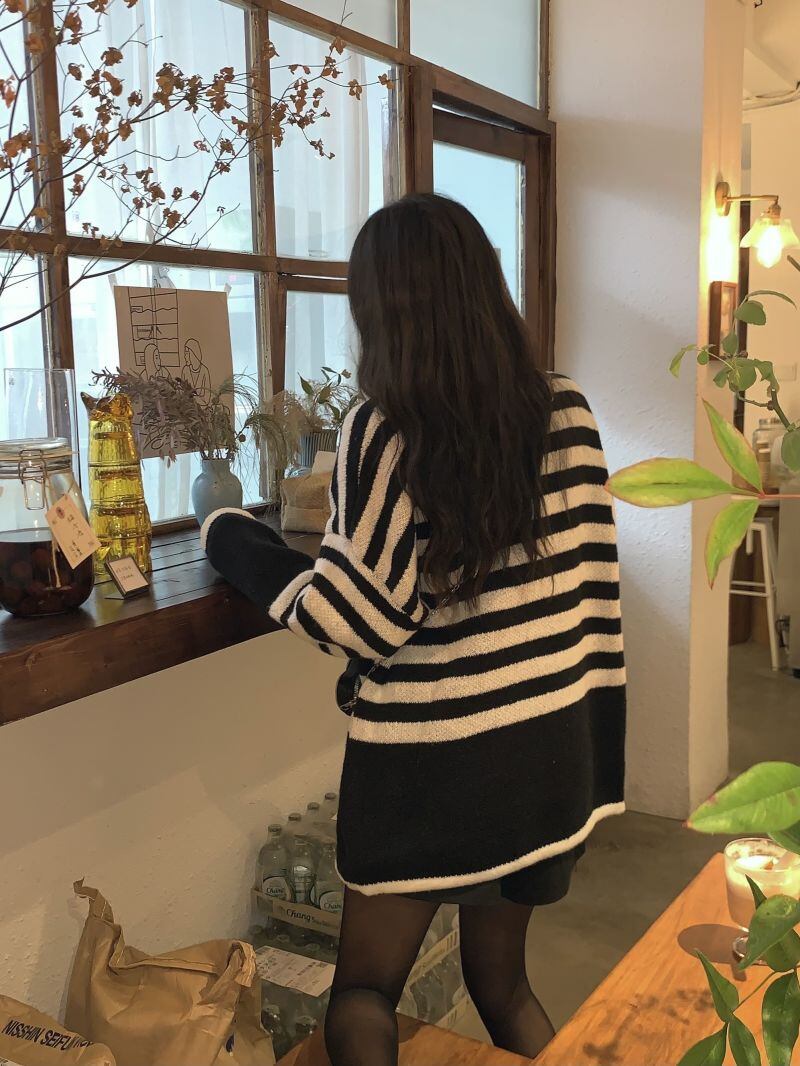 2022冬INS★韓国風 レトロ デザイン感 エレガント ストライプ 柄 ニット セーター