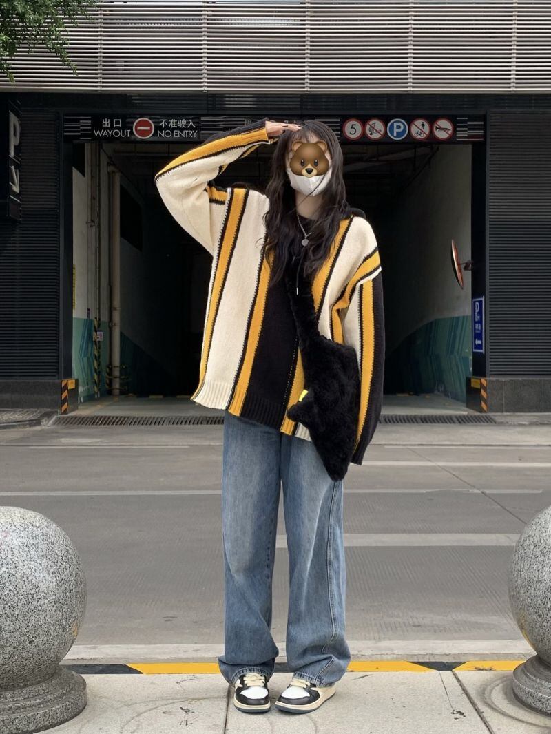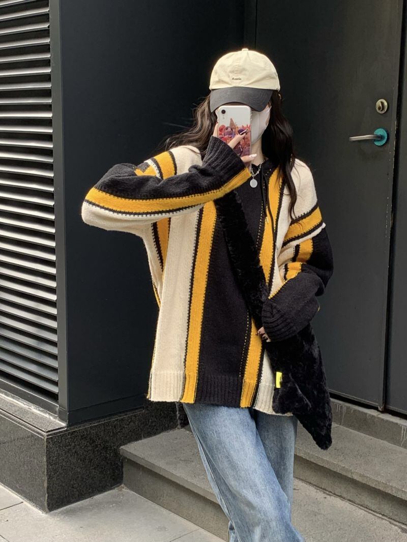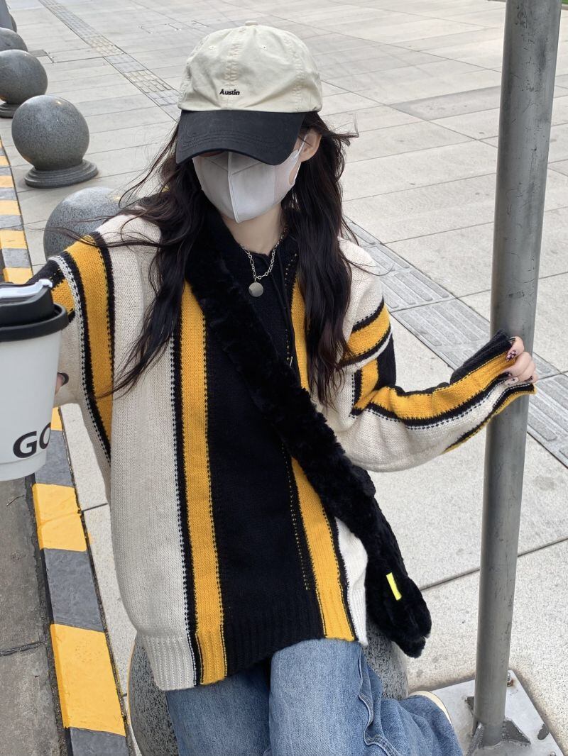 2022冬INS★韓国風 レトロ デザイン感 エレガント ストライプ 柄  ニット セーター