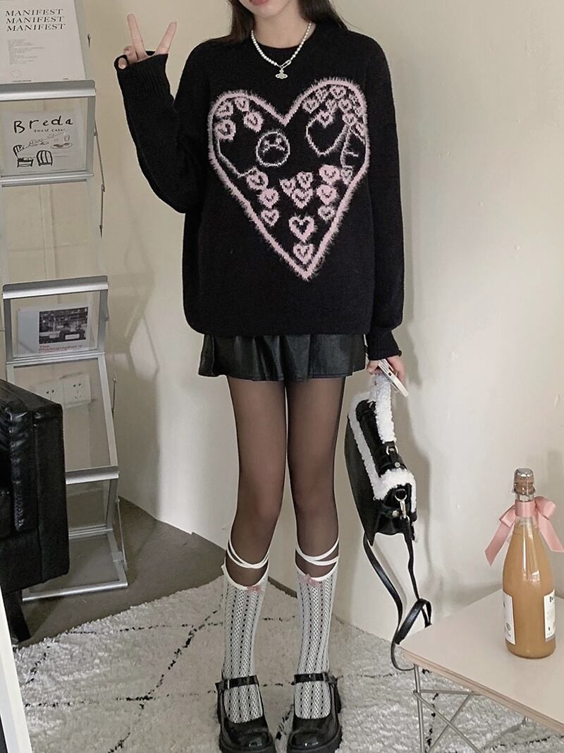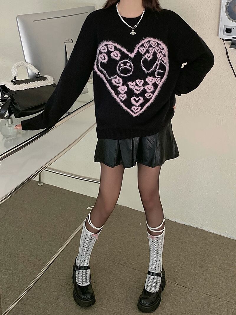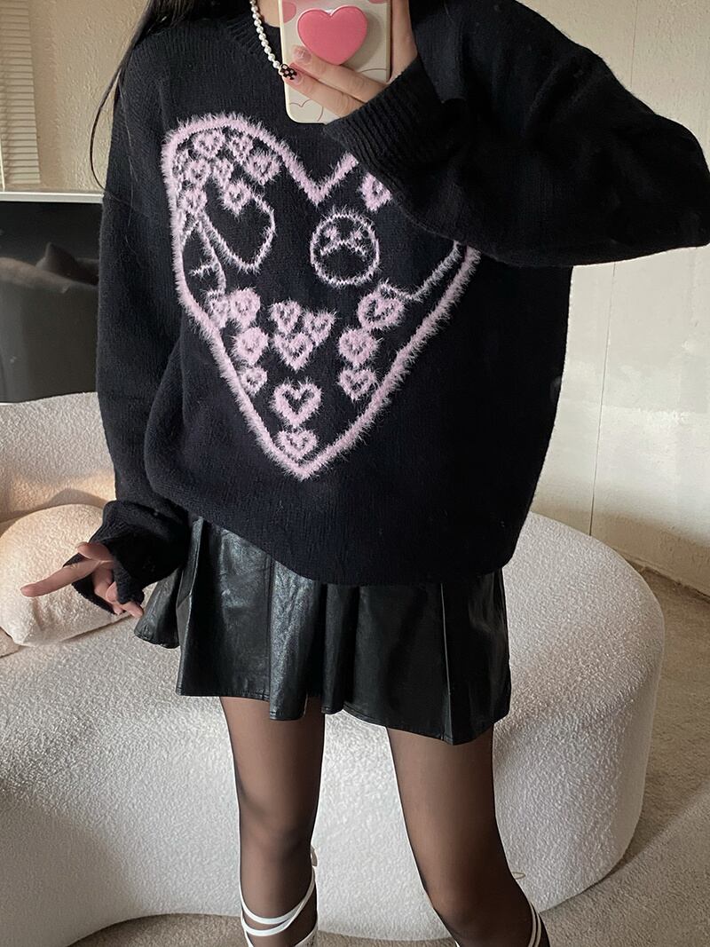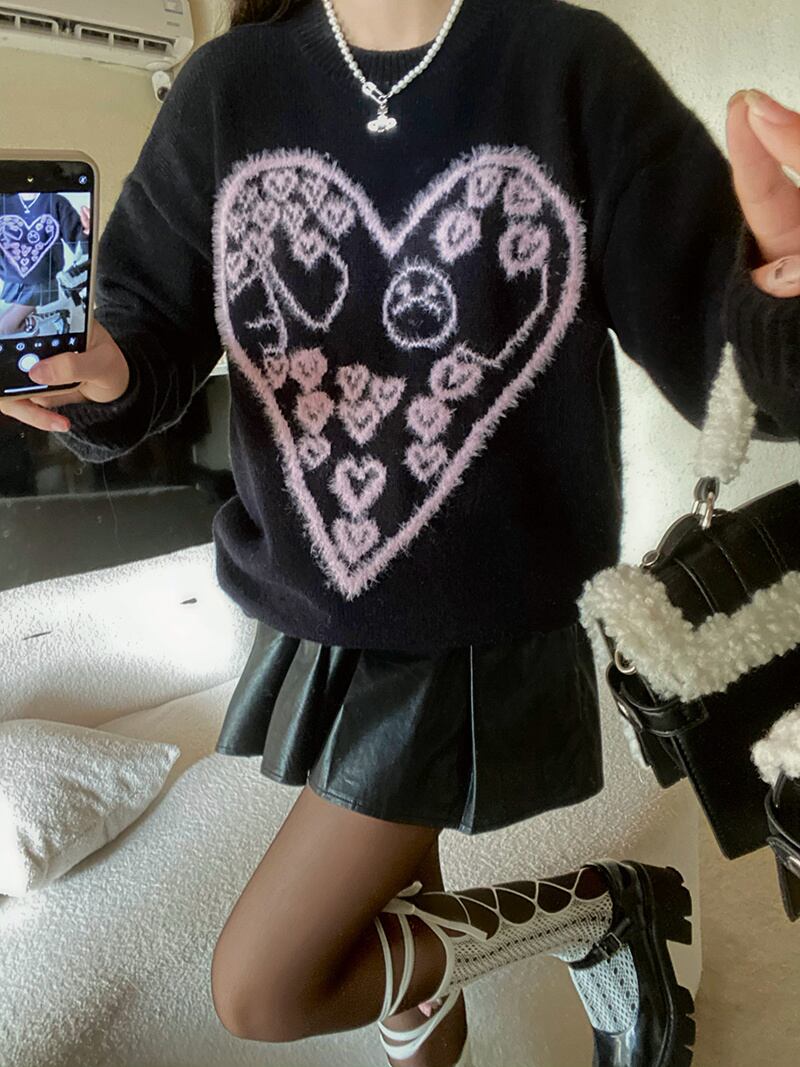 2022冬INS★韓国風 レトロ 合わせやすい ギャル ハート形 ニット セーター