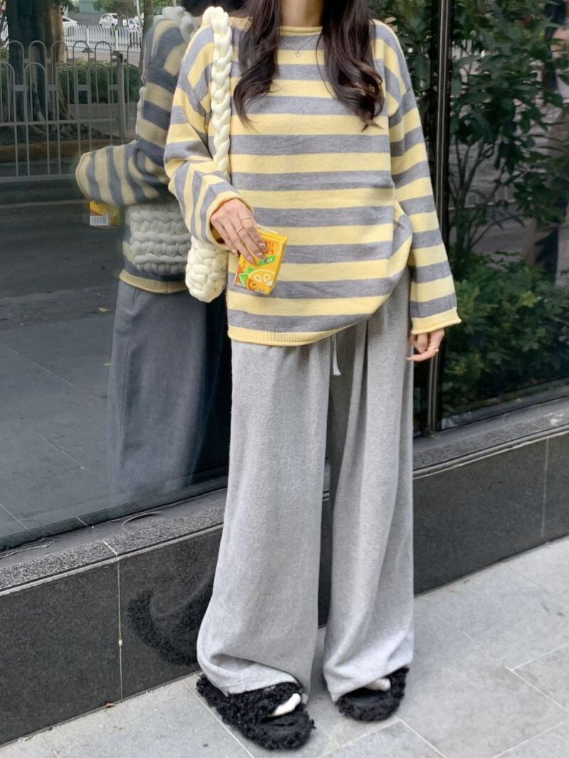 2022冬INS★韓国風 レトロ 合わせやすい ストライプ 柄  配色 ニット セーター
