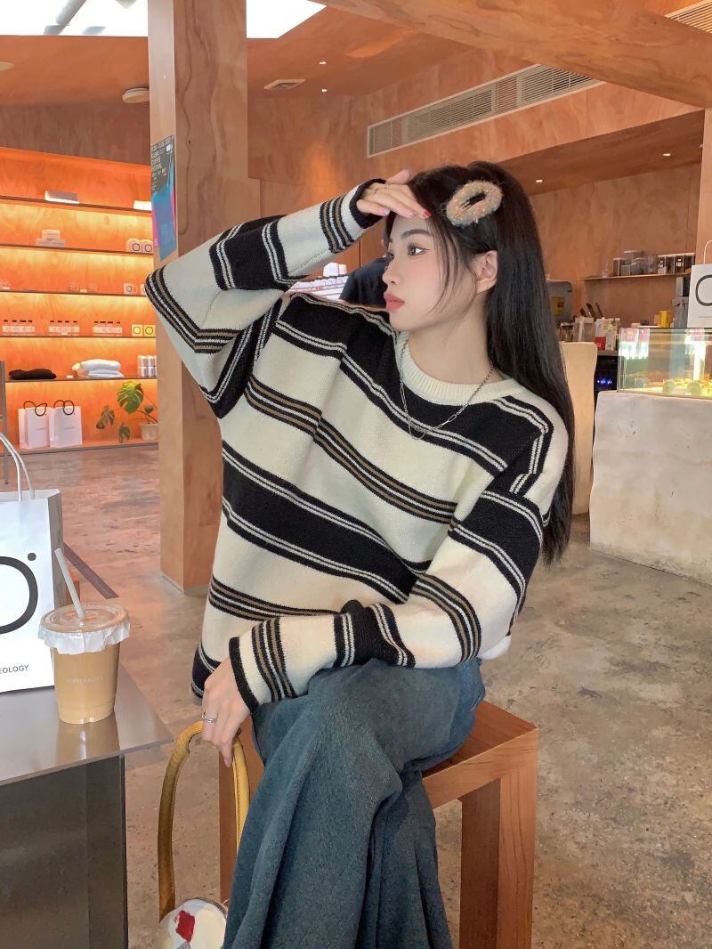 2022冬INS★韓国風 レトロ ストライプ 柄  配色 ニット セーター