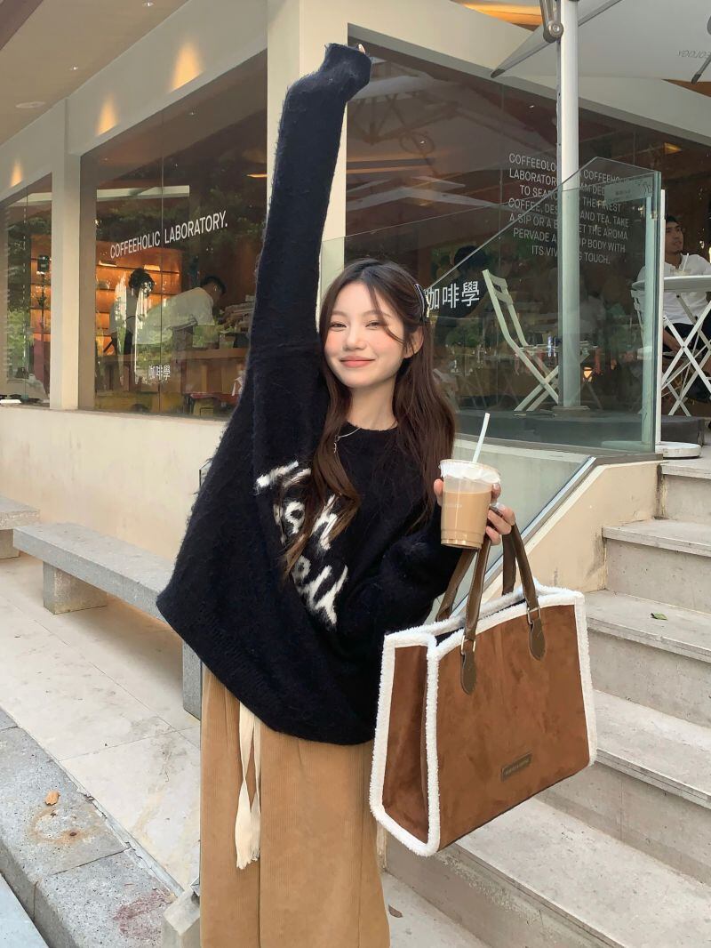 2022冬INS★韓国風 レトロ アルファベッ キャンパス ニット セーター