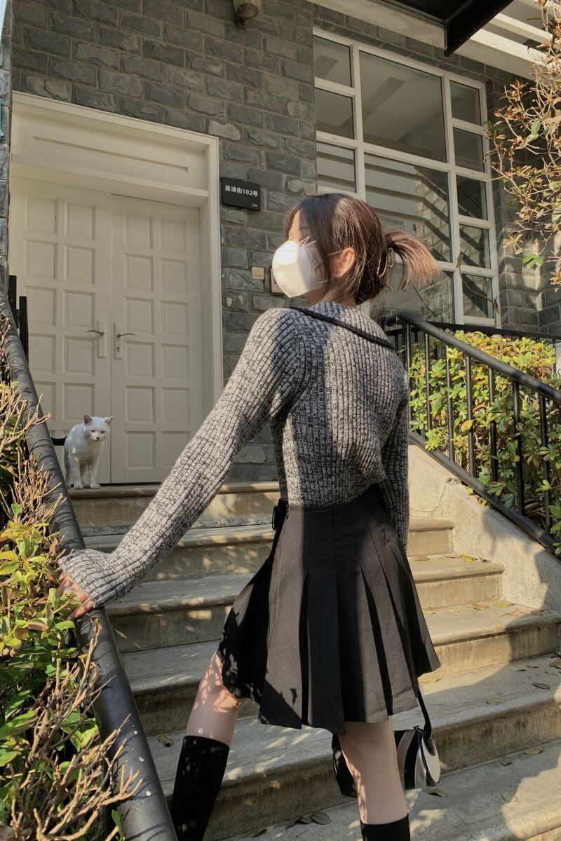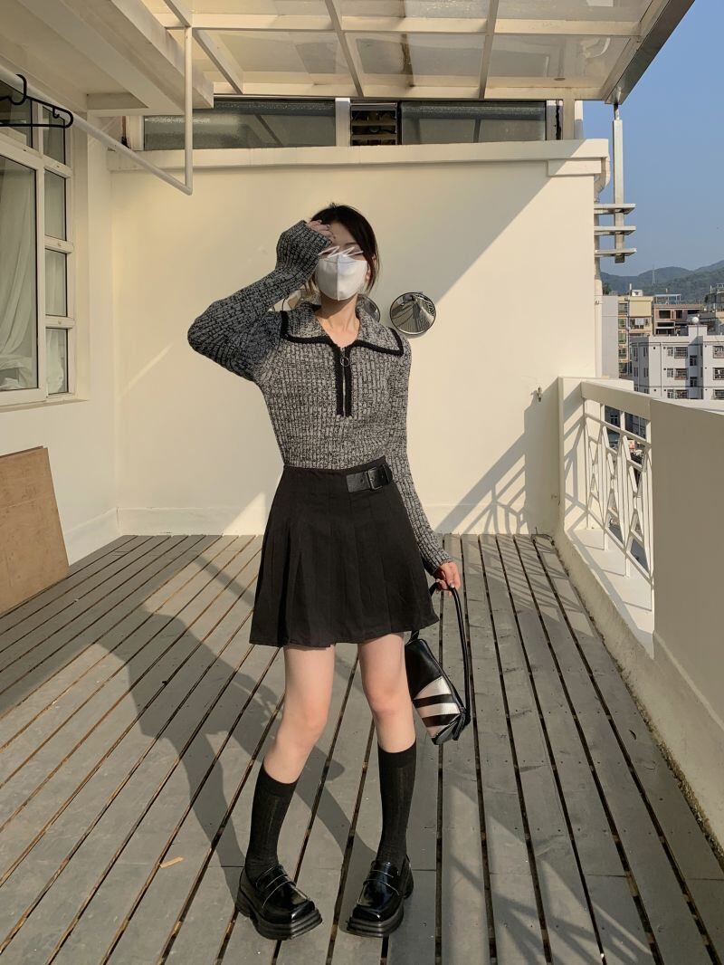 2022冬INS★韓国風 レトロ 超気質 折り襟 レイジー風 ニットセーター