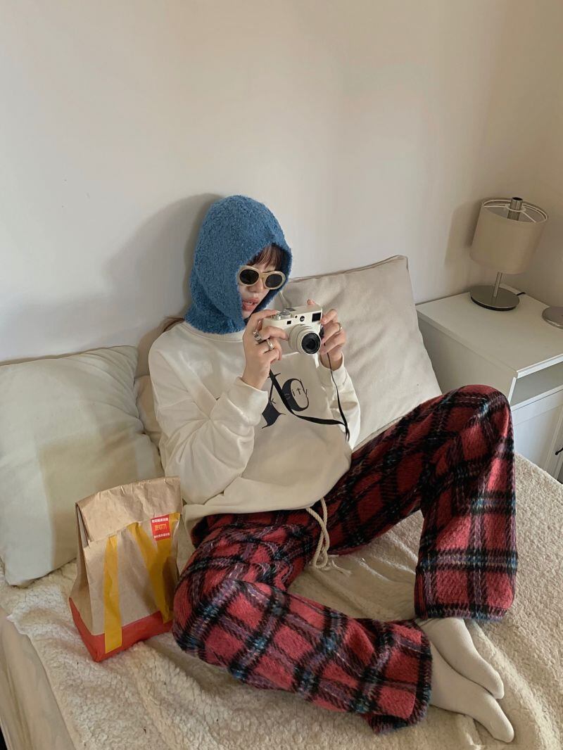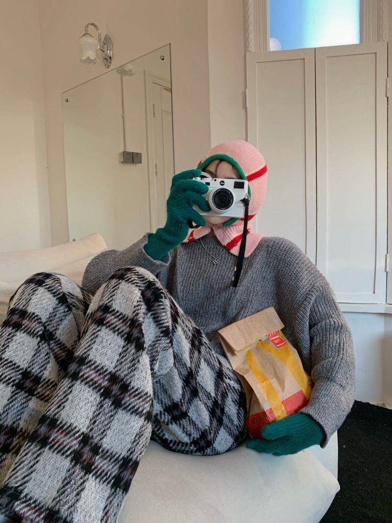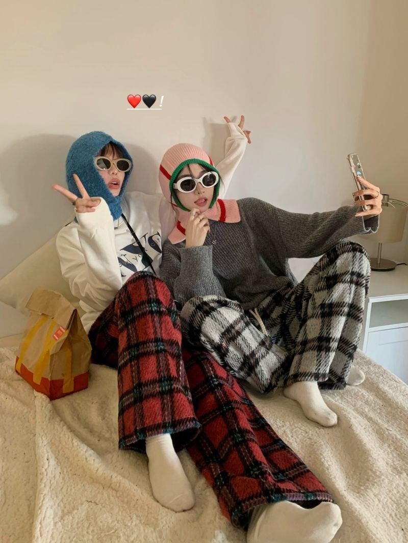 2022冬INS★韓国風 レトロ ラシャ ゆったり チェック カジュアルパンツ