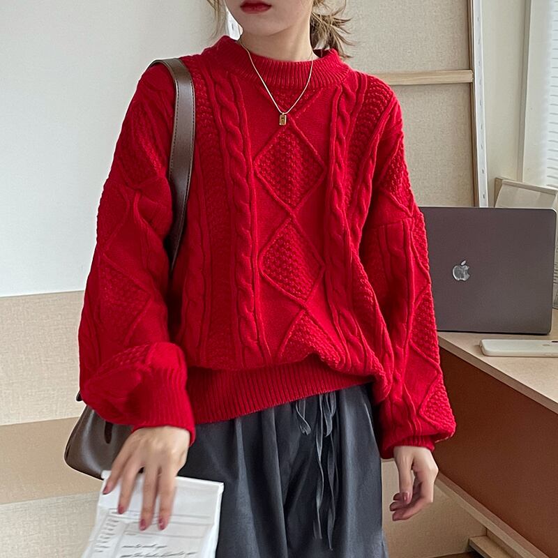 2022冬INS★韓国風 レトロ ラウンドネック ツイスト模様 レイジー風 ニットセーター
