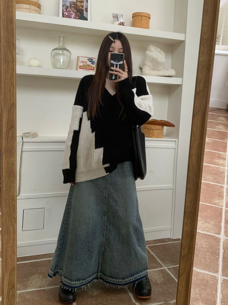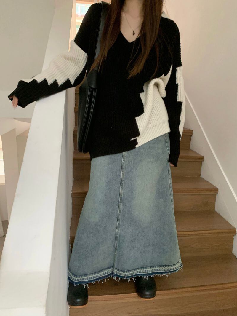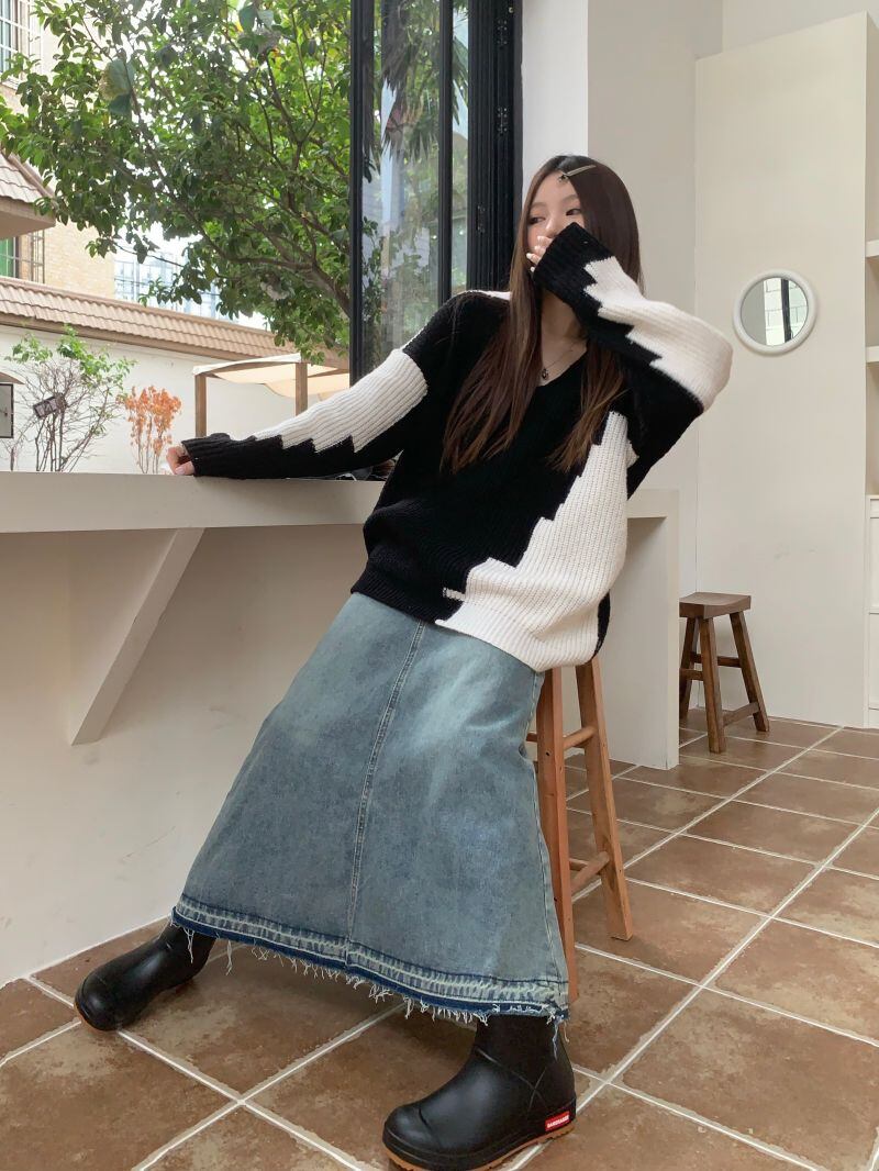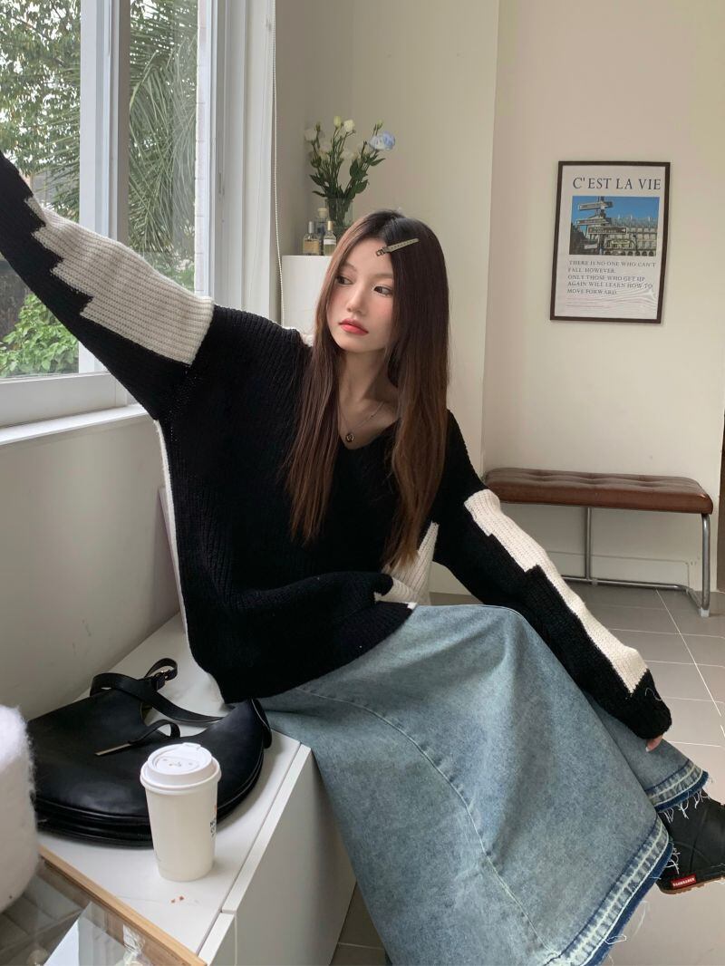 2022冬INS★韓国風 レトロ レイジー風 配色 ニット セーター