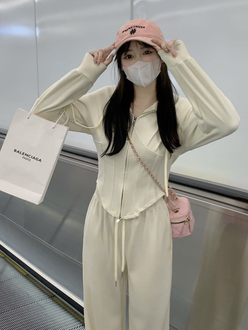 2022冬INS★韓国風 レトロ 運動風 チャック トップス カジュアルパンツ