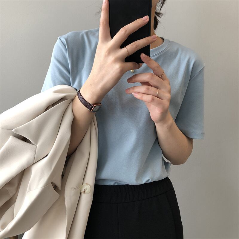 2023春INS★カジュアル 気質  Tシャツ ラウンドネック