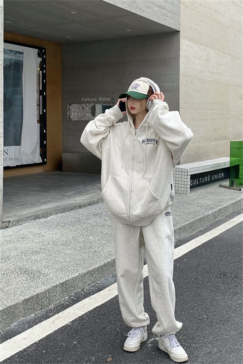 2023春INS★カジュアル レトロ ゆったり アルファベット プリント パーカー コート パンツ