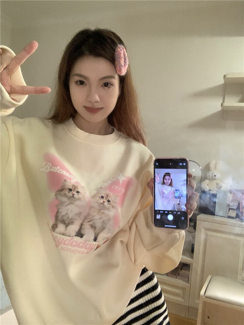 2022冬INS★ファッション おしゃれ韓国系 裏起毛 ラウンドネック プリント スウェット