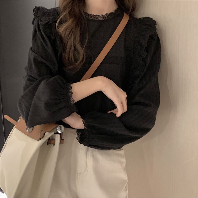 2022冬INS★レイジー風レトロ エレガント レース シャツ