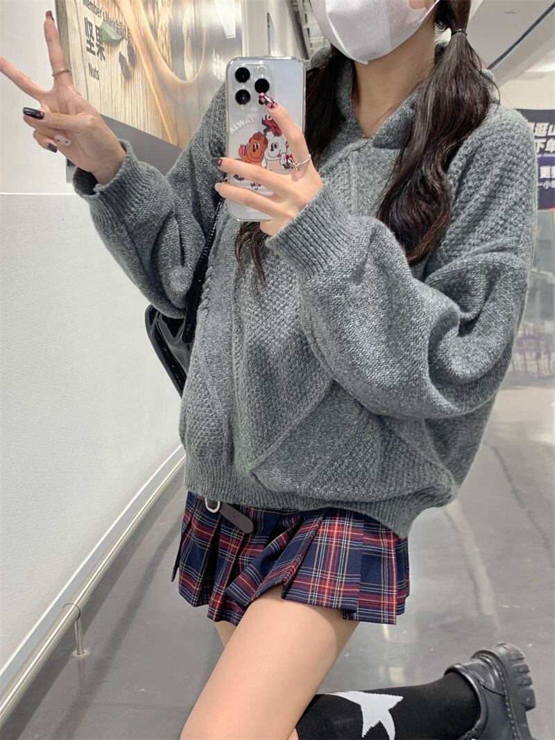 2022冬INS★レイジー風レトロ 帽子付き ツイスト模様   ニットセーター