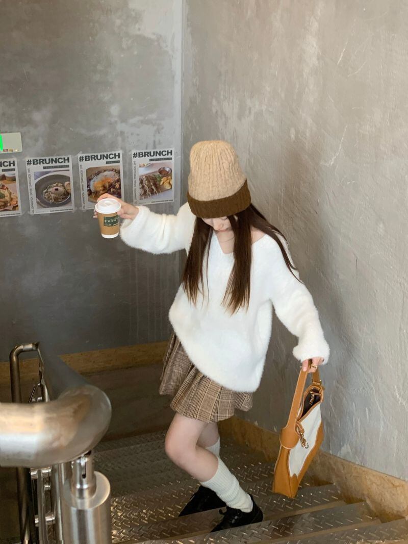 2022冬INS★レイジー風レトロ エレガント Vネック フワフワ  ニットセーター