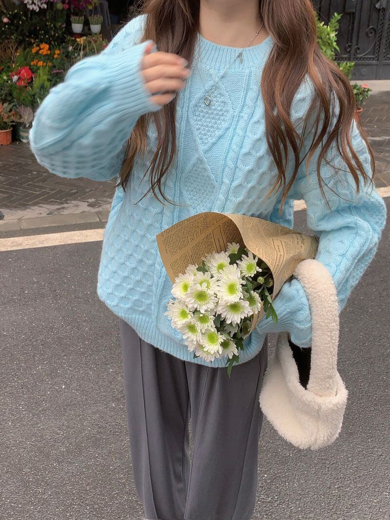 2022冬INS★レイジー風レトロ デザイン感 ツイスト模様 ニットセーター