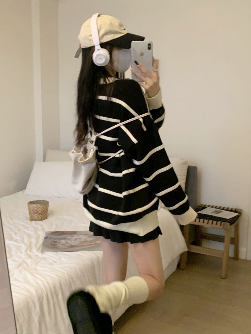 2022冬INS★韓国風 レトロ デザイン感  ストライプ 柄 ニットセーター