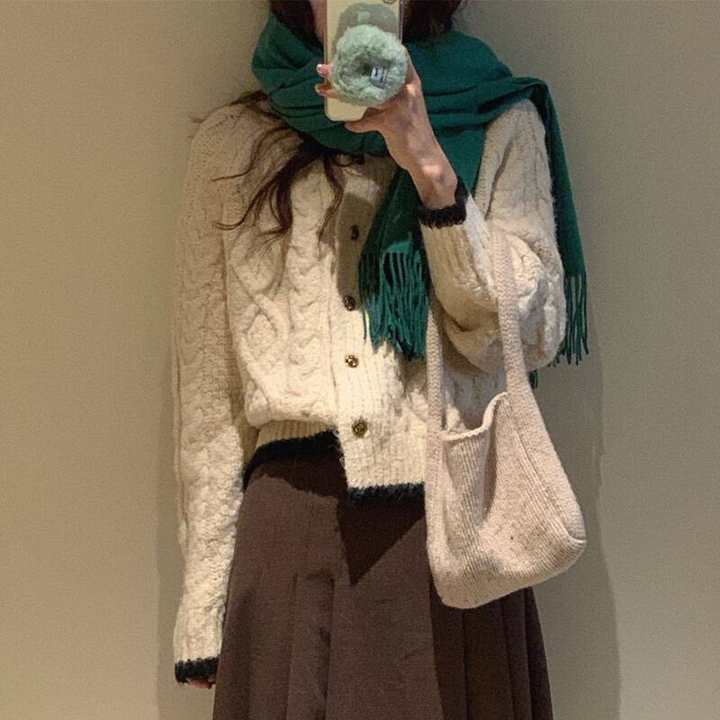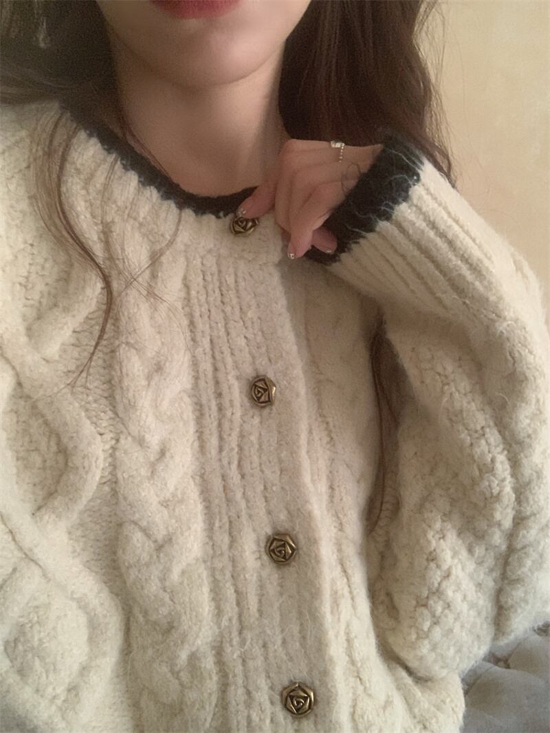 2022冬INS★韓国風 超人気ゆったり 可愛い ツイスト模様 ニットコート