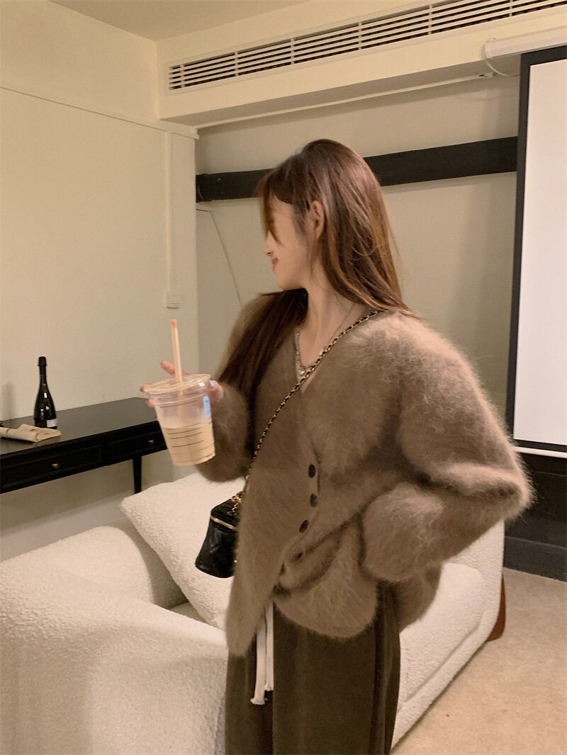 INS 秋新作 エレガント 不規則 ミンク ふわふわ シングルブレスト カーディガン