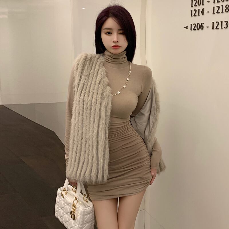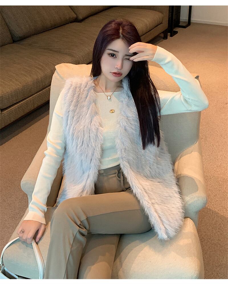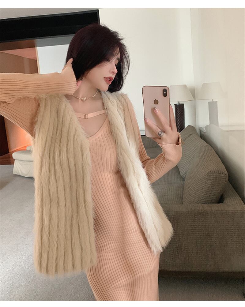 秋INS 新作 好感度UP レトロ ベスト レディース 韓国風 フェイクファー 毛糸ベスト