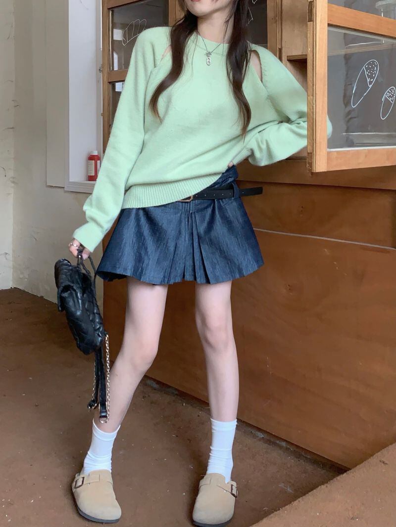2022冬INS★韓国風 レトロ 超気質 オフショルダー レイジー風 ニットセーター