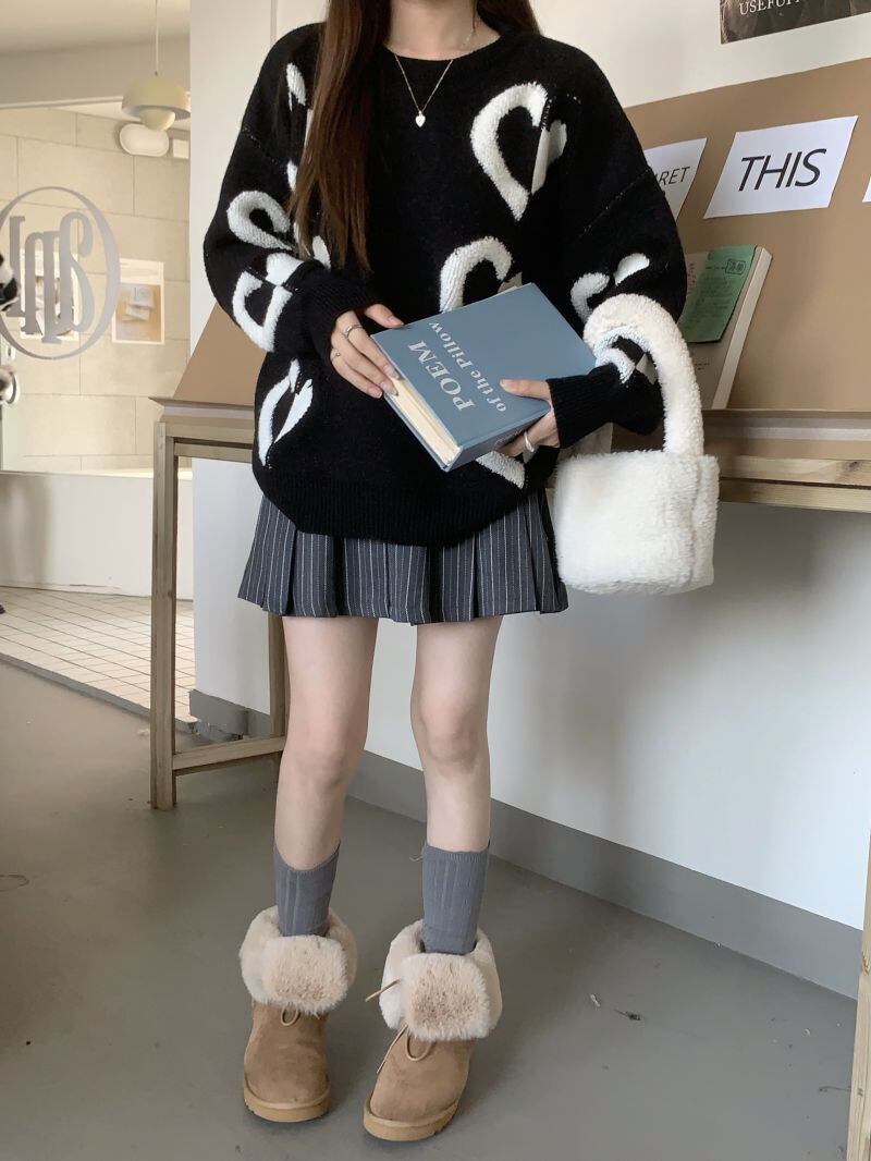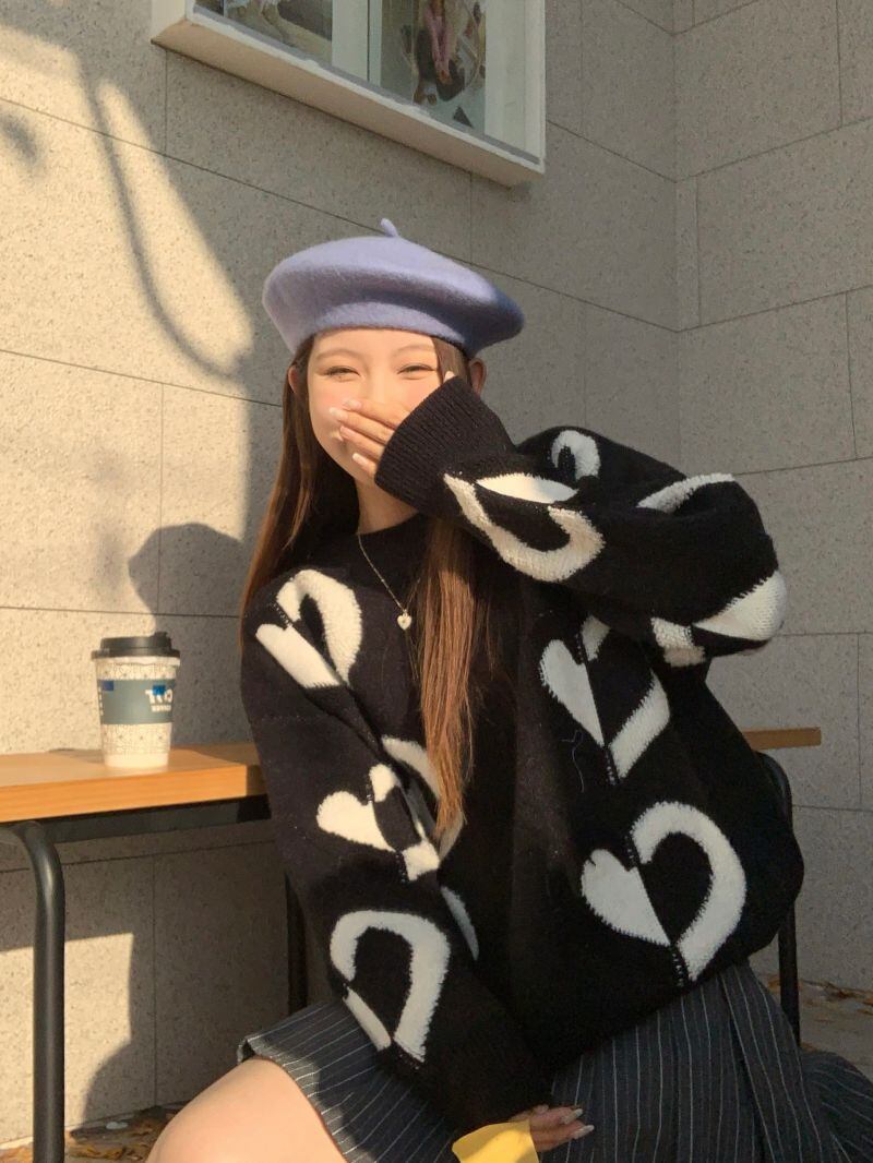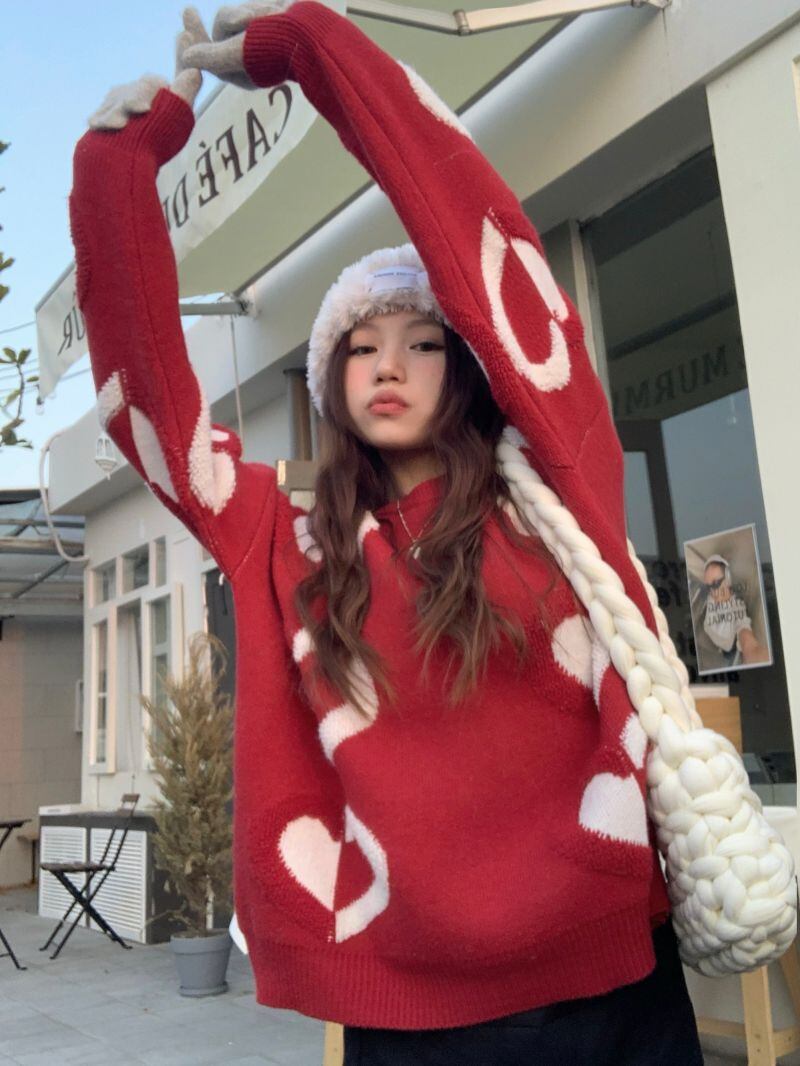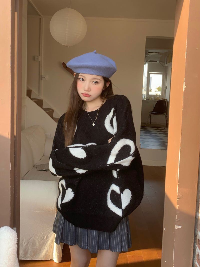 2022冬INS★韓国風 レトロ ラウンドネック ハート形 レイジー風 ニットセーター