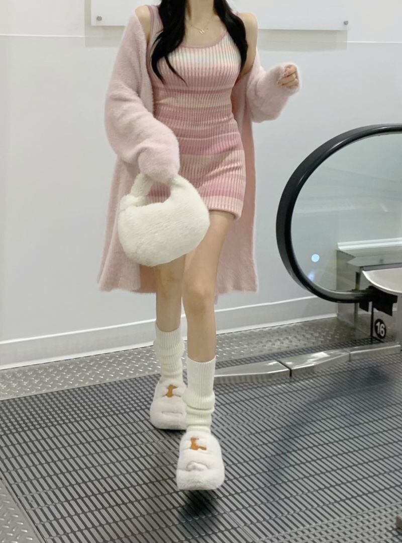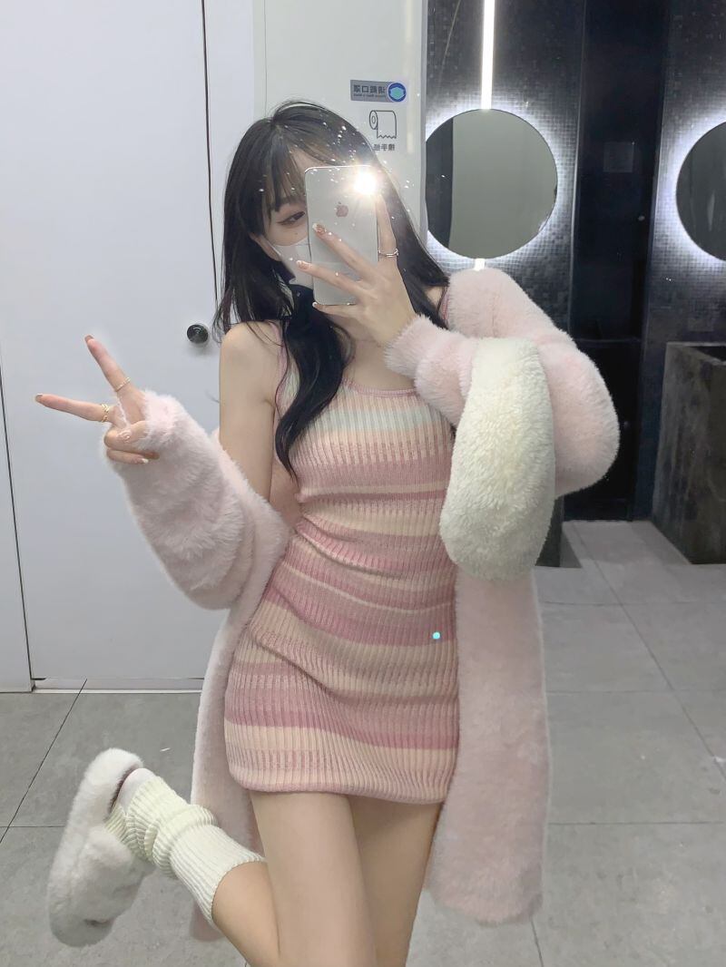 2022冬INS★韓国風 レトロ スウィート ストライプ 柄 レイジー風 ニットキャミソール ニットウェア