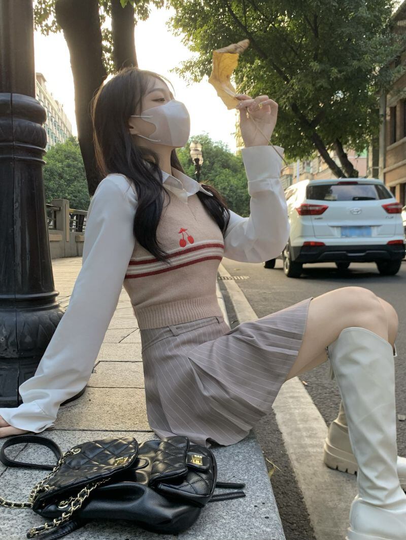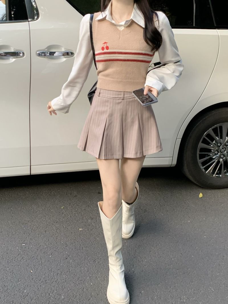 2022冬INS★韓国風 レトロ ストライプ 柄 レイジー風 可愛い ニットベスト