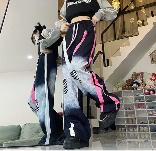 ワイド バギーパンツ 切り替え バイカラー 体型カバー 着痩せ シンプル カジュアル