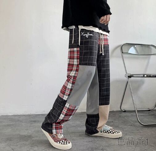 パンツ 切り替え バイカラー 体型カバー 着痩せ チェック柄 【大きいサイズあり】 原宿系