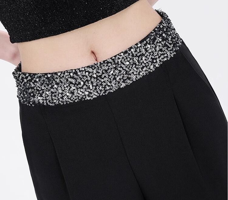 全2色 パンツ ハイウエスト 切り替え 体型カバー 着痩せ シンプル