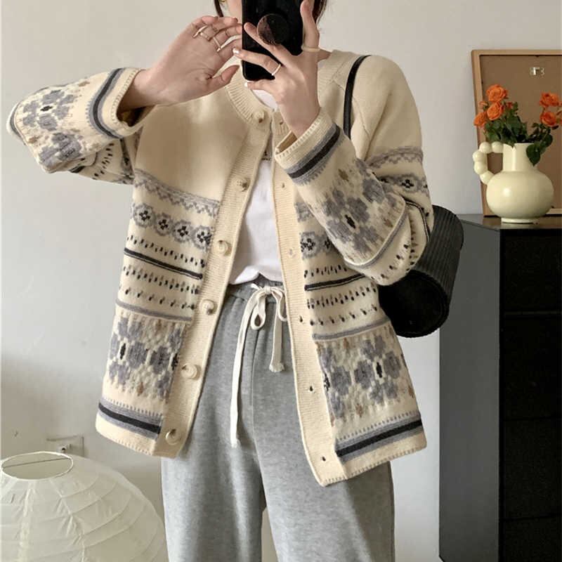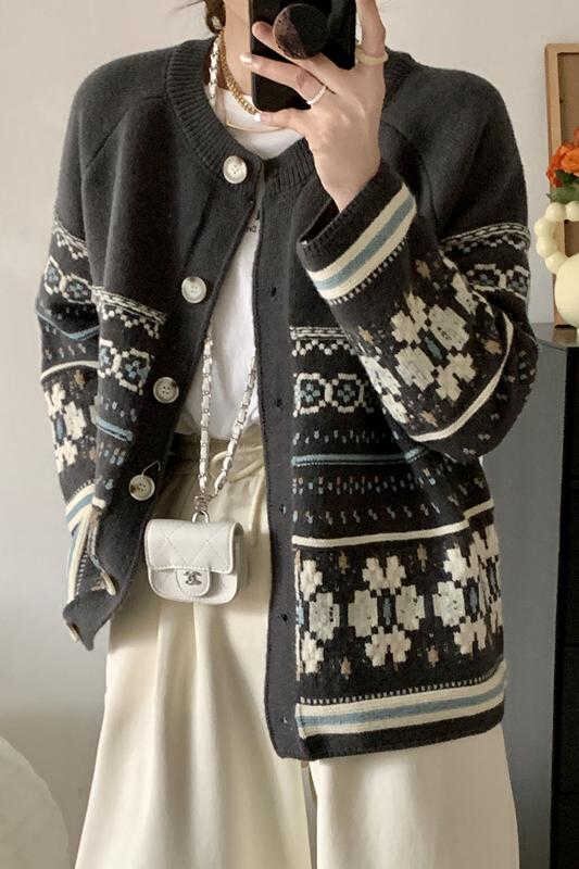 2023秋INS新作★カジュアル 韓国風 気質 レトロ 花柄 着心地抜群 シングルブレスト ニット セータ?