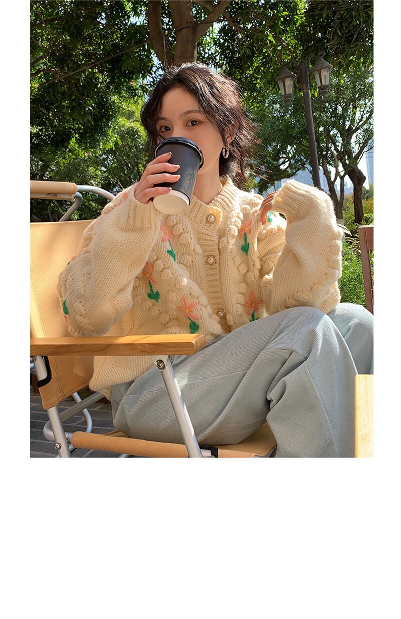 2022冬INS★韓国風 レトロ お花 刺繍 シングルブレスト カーディガン