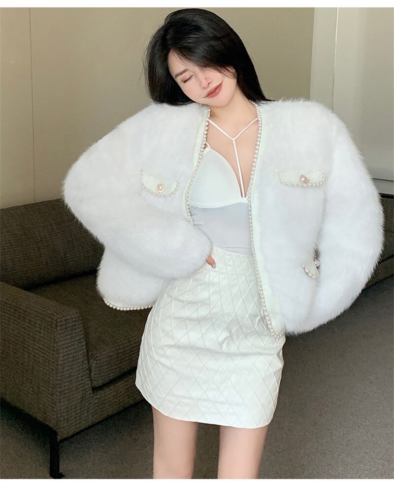 秋INS 新作 好感度UP レトロ 韓国風 エレガントパール 2色 毛糸 コート