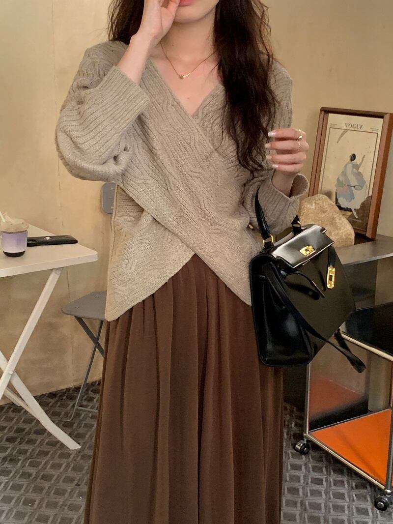 2022冬INS★ファッション超気質 ゆったり Vネック ツイスト模様 ニットウェア セーター