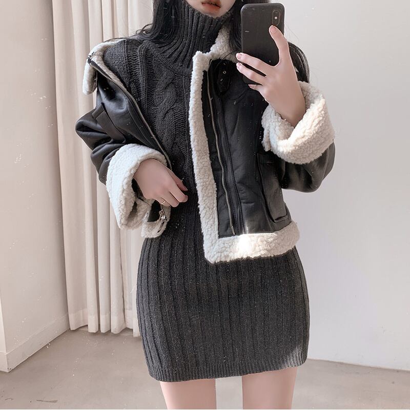 2022冬INS★ファッション レイジー風 デザイン感 ニットセーター+タイトスカート