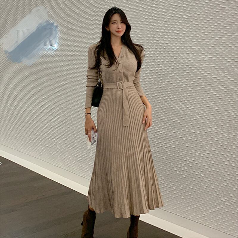 2022冬INS★ファッション 性抜群 レイジー風 シンプルベルトハイ タイトワンピース