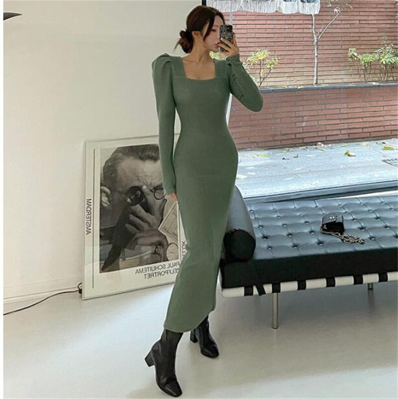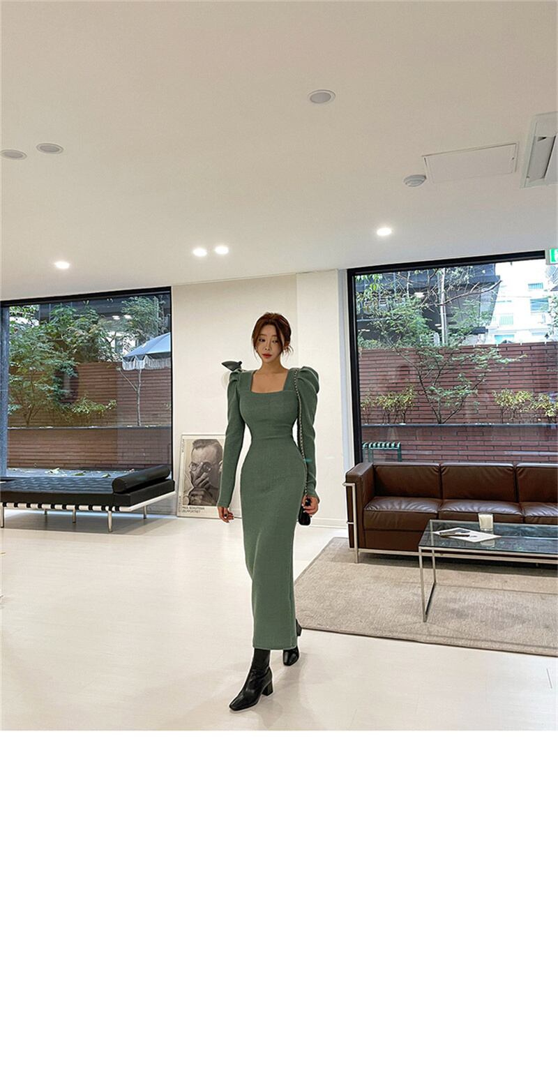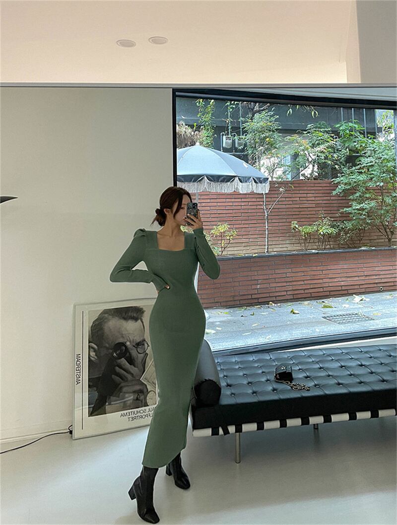 2022冬INS★ファッション レイジー風 スクエアネック ニット タイトワンピース